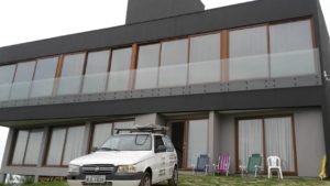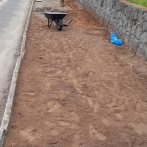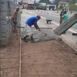 Reforma do muro com aplicação de pastilhas imitando tijolo.