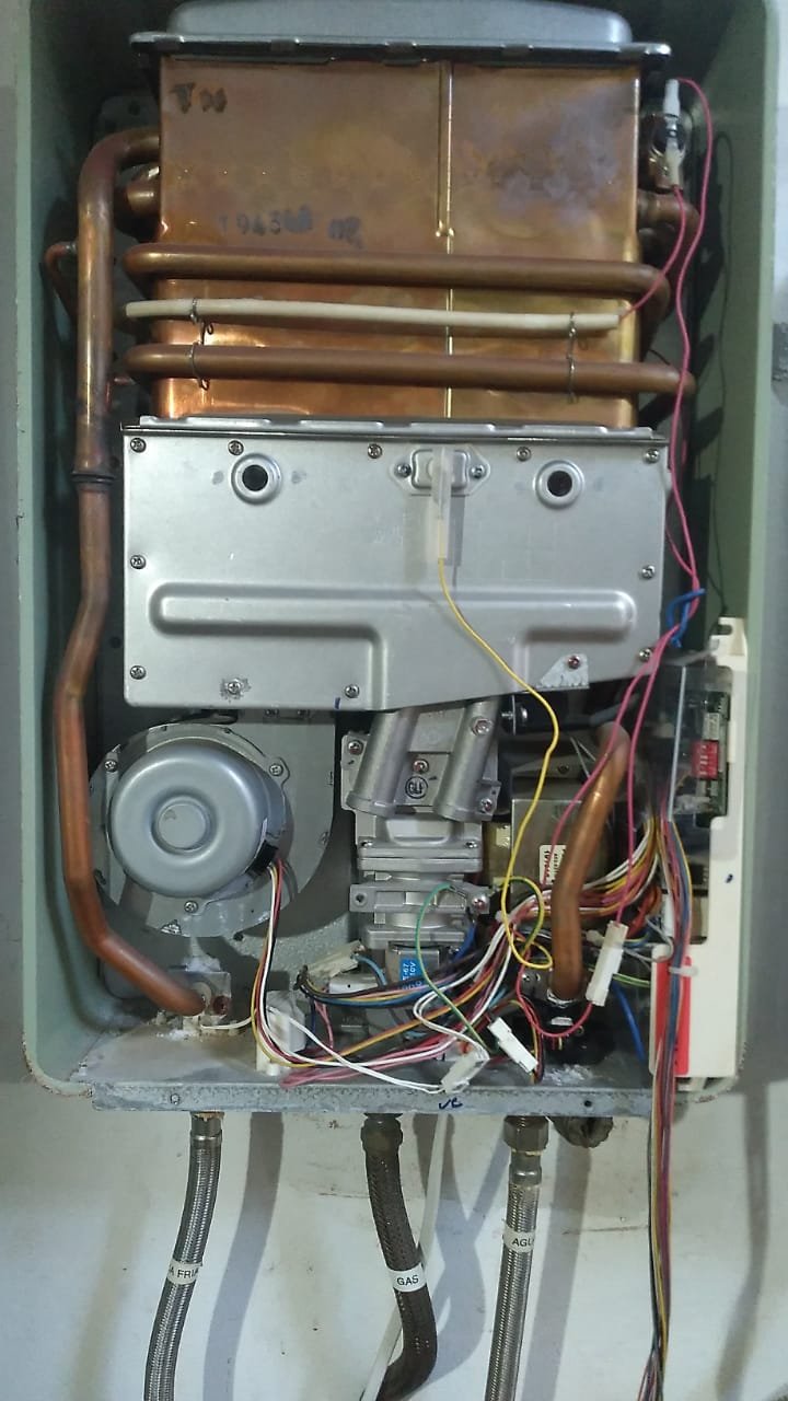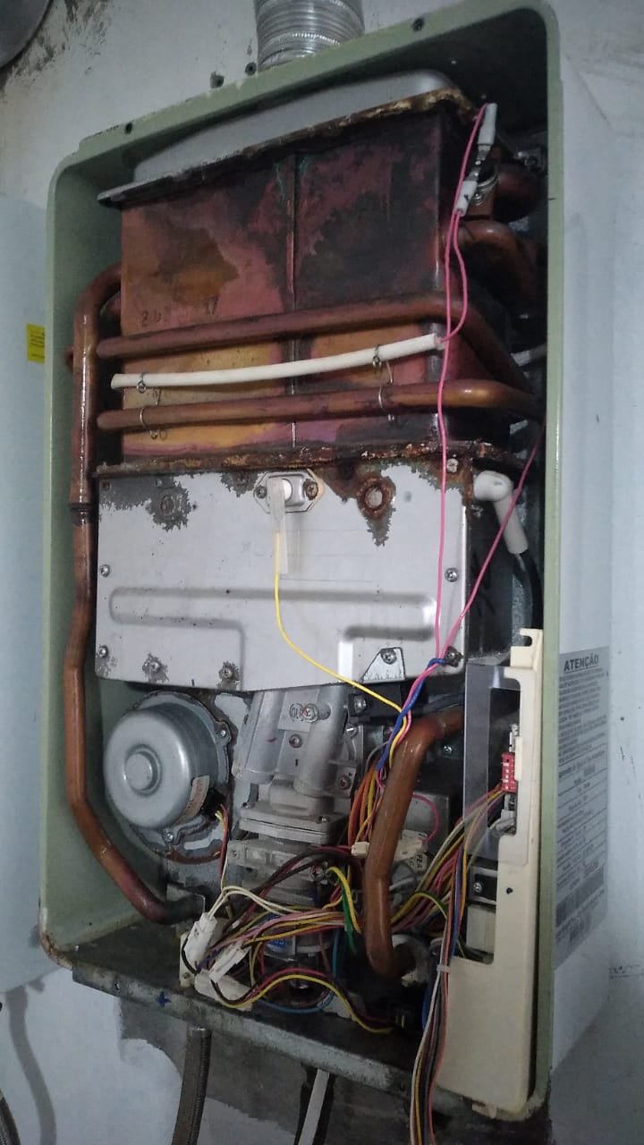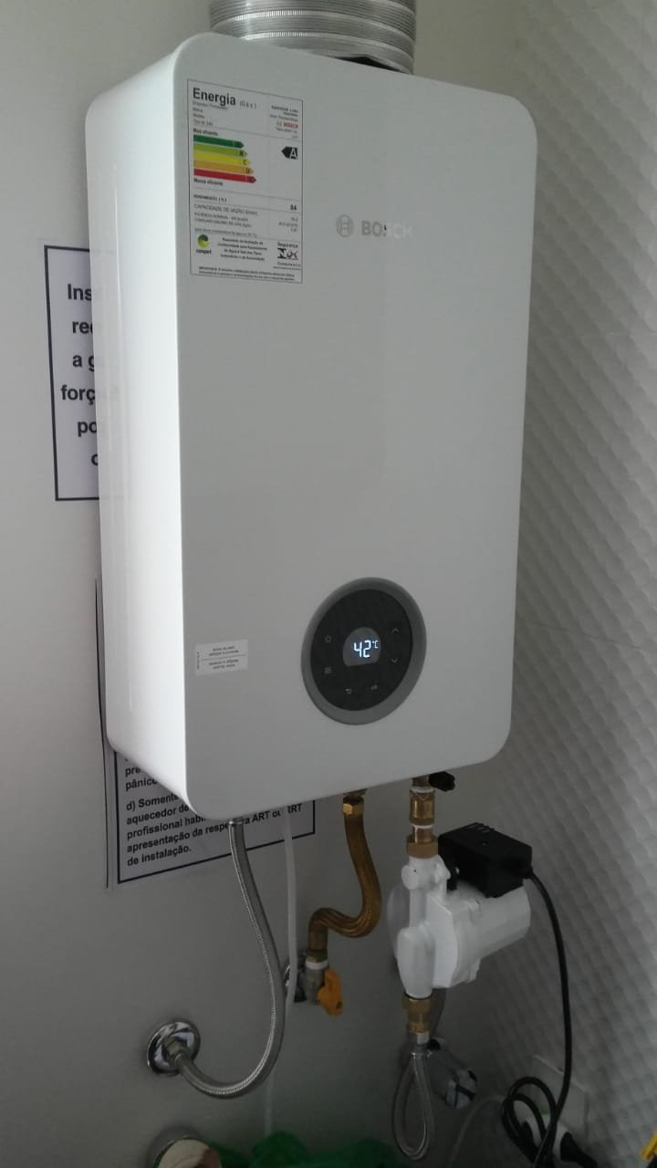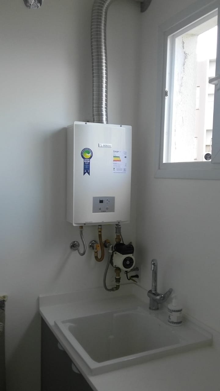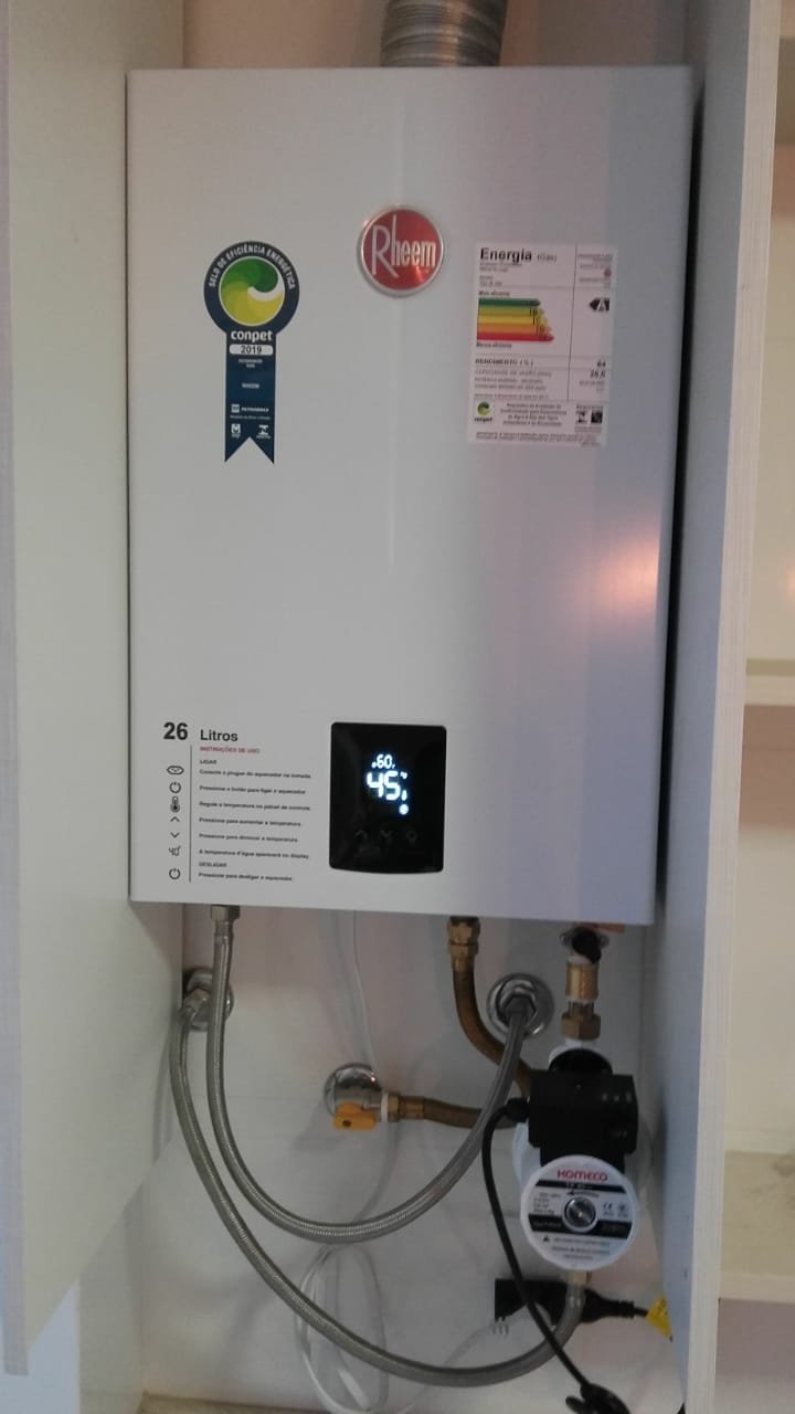 Sistema de água quente nós chuveiros com aquecedor a gás.