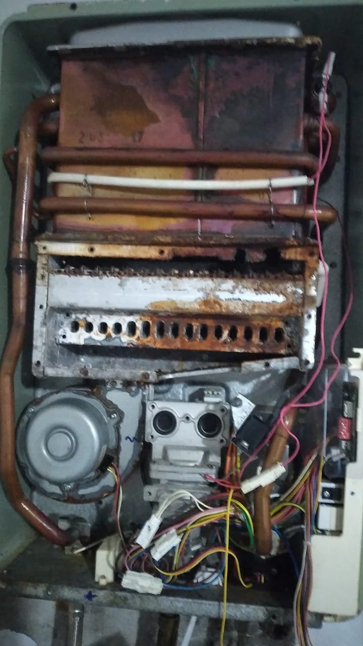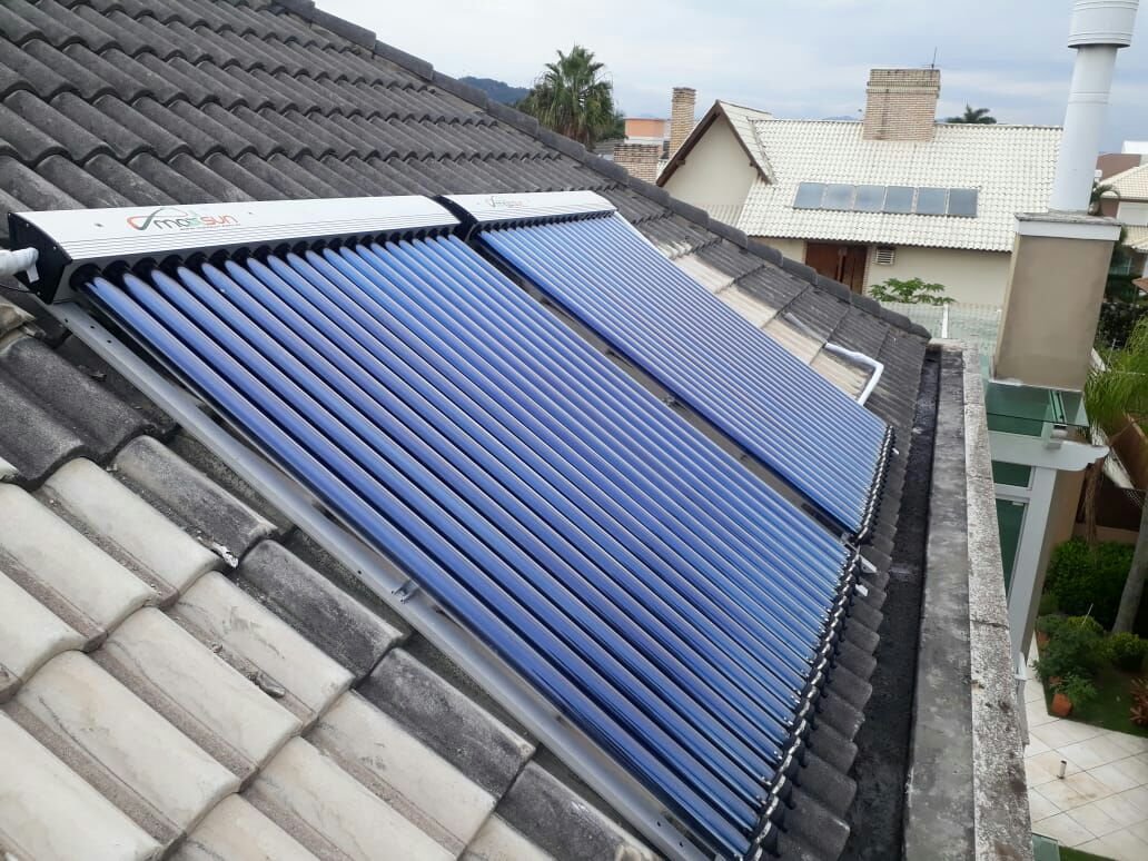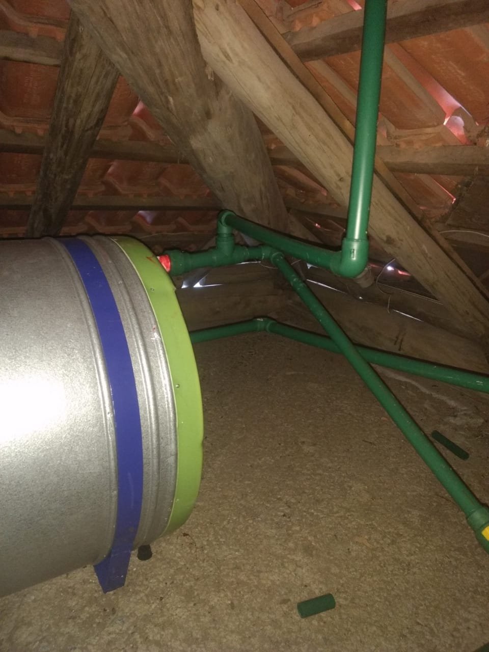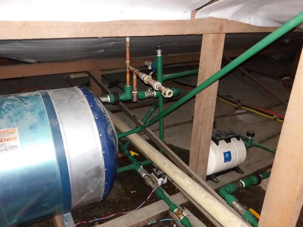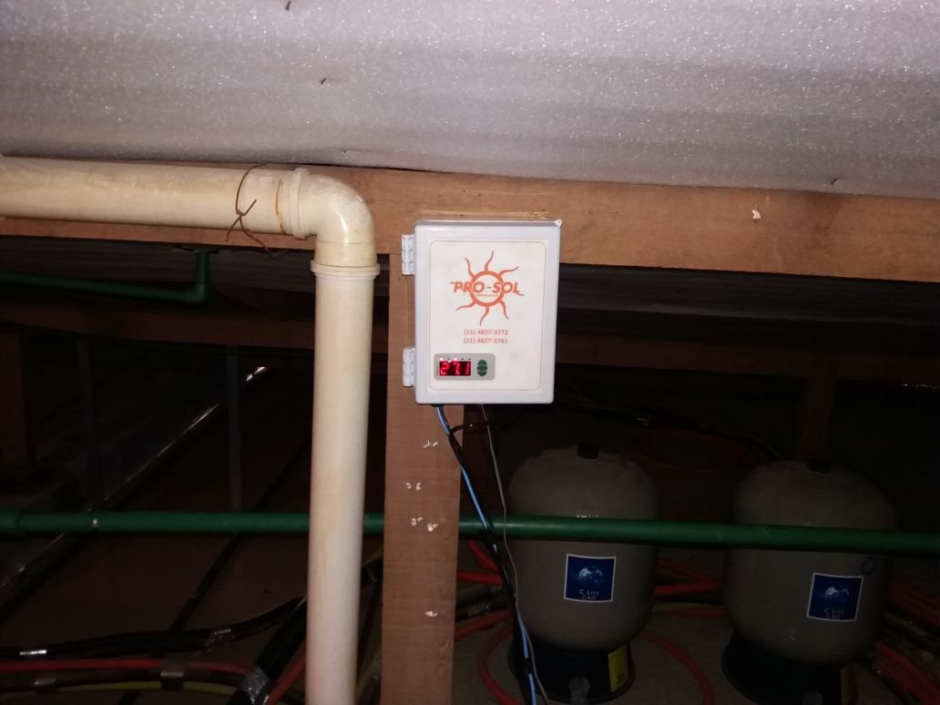 Sistema de água quente nós chuveiros com aquecedor a gás.