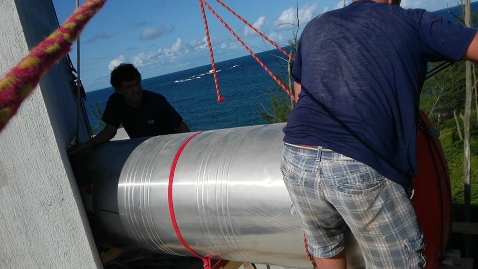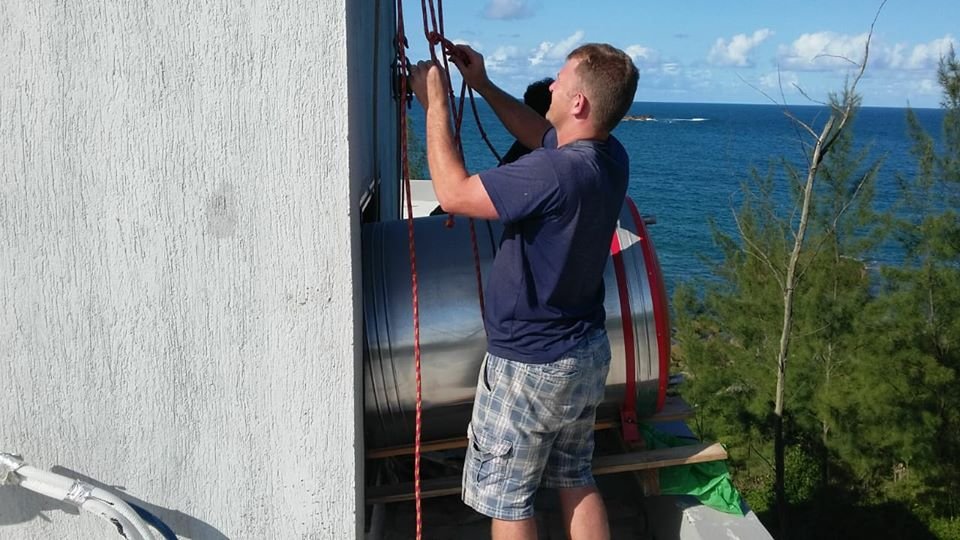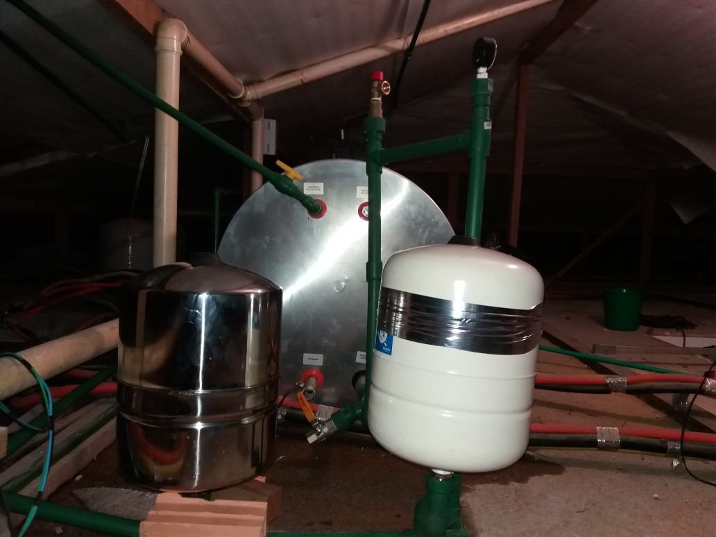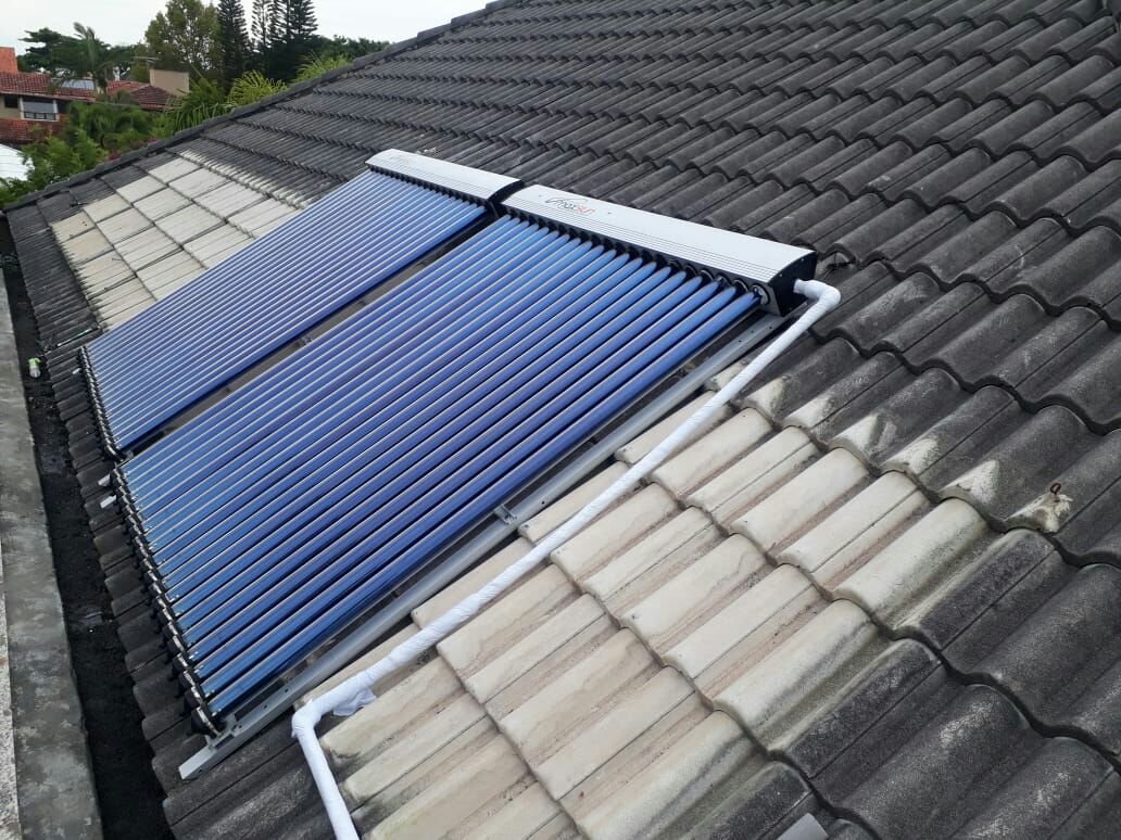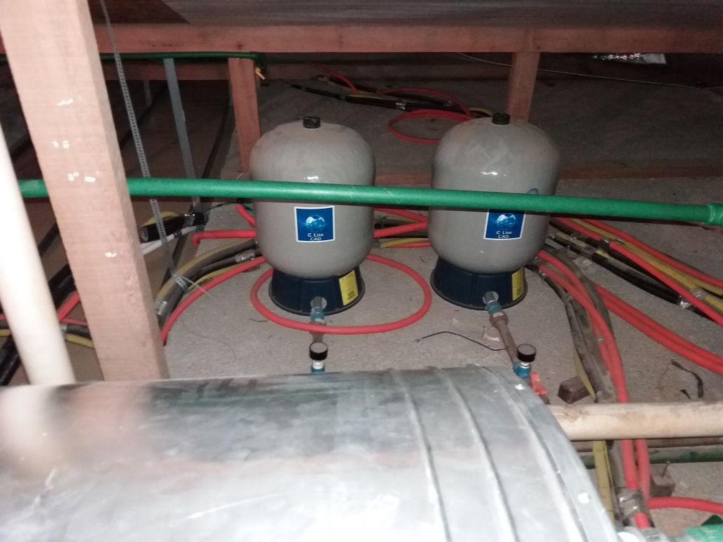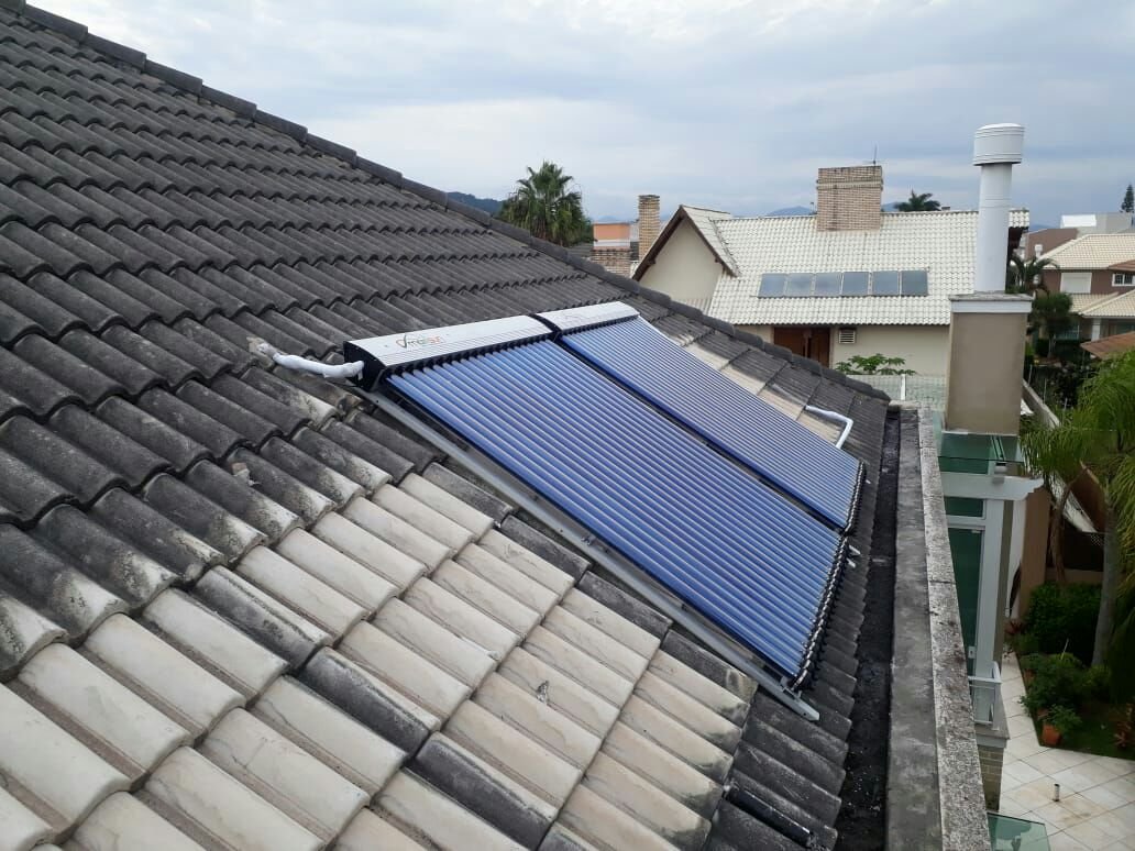 Sistema de água quente nós chuveiros com aquecedor a gás.