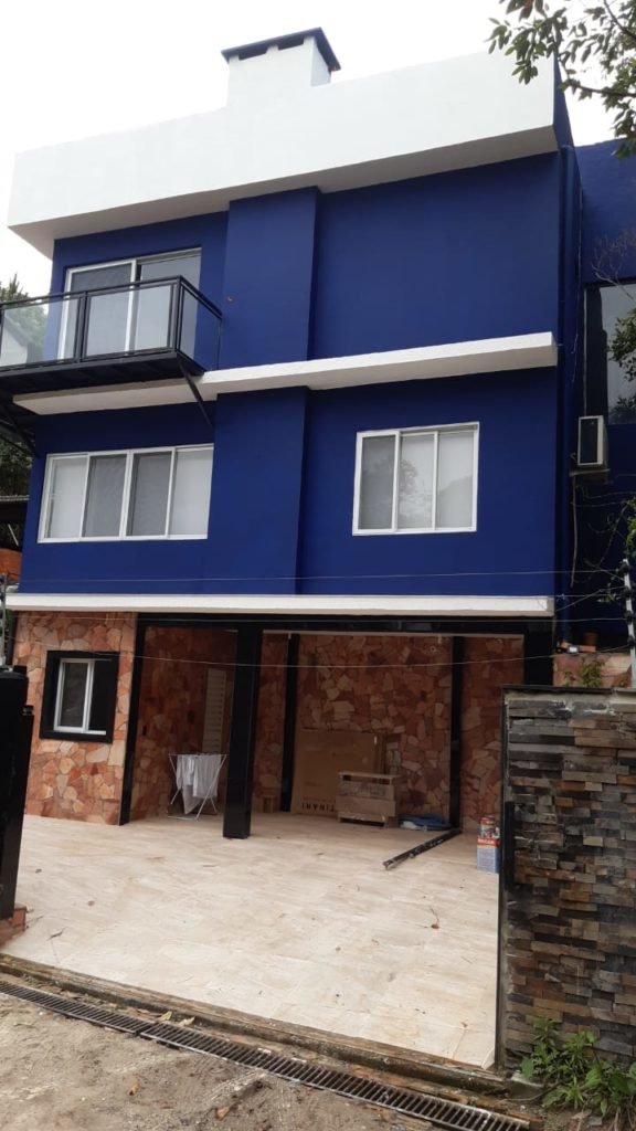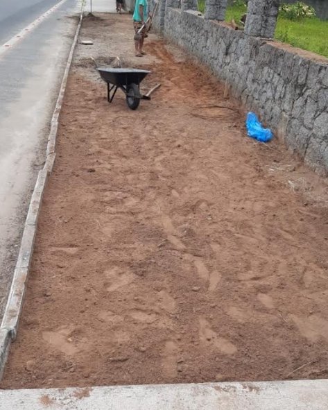 Reforma do muro com aplicação de pastilhas imitando tijolo.